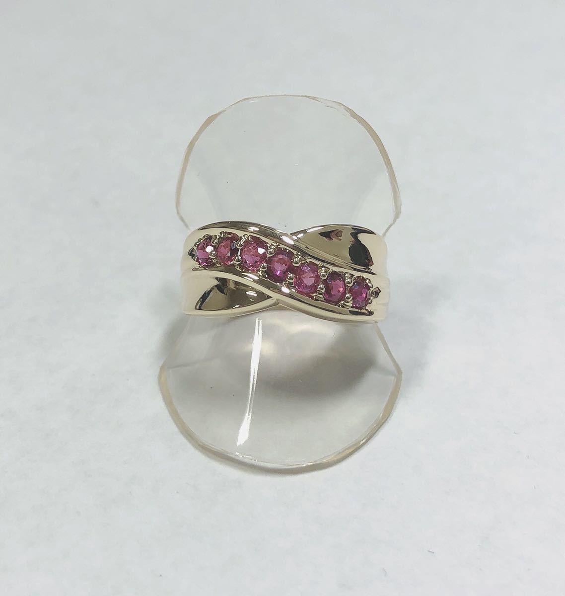 - 【質屋 尾張屋商店 東京】 ☆仕上済☆ K18YG ルビーレディースリング #14.5 インフィニティ