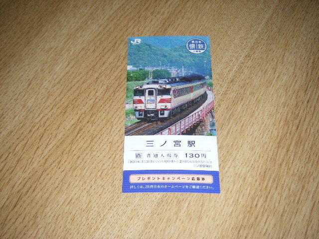 - 【JR西日本】懐鉄入場券 三ノ宮駅発売分 特急はまかぜ 1枚 応募券付