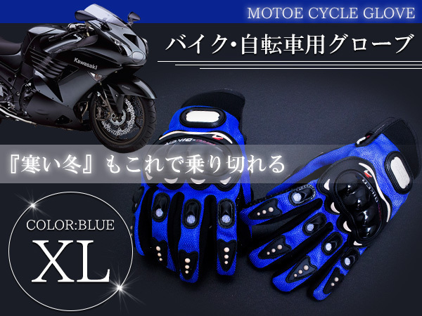 - 硬質メッシュ バイクグローブ XLサイズ プロテクター付 手袋 青 ナックルカップ付き メッシュグローブ ブルー マウンテンバイク