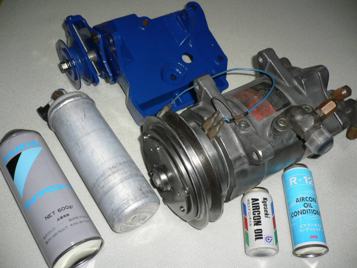 - R12新ガス付コンプレッサ6点setブラケット新レシーバー新オイルL型ハコスカS30ZケンメリL6L20フェアレディGC10グロリアGC110ジャパンC210