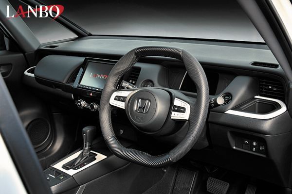 - LANBO オリジナルステアリング ガングリップ 【オールレザータイプ】:フィット(GR1~4) ブラック&ブラックカーボン調 【SH22-BK】