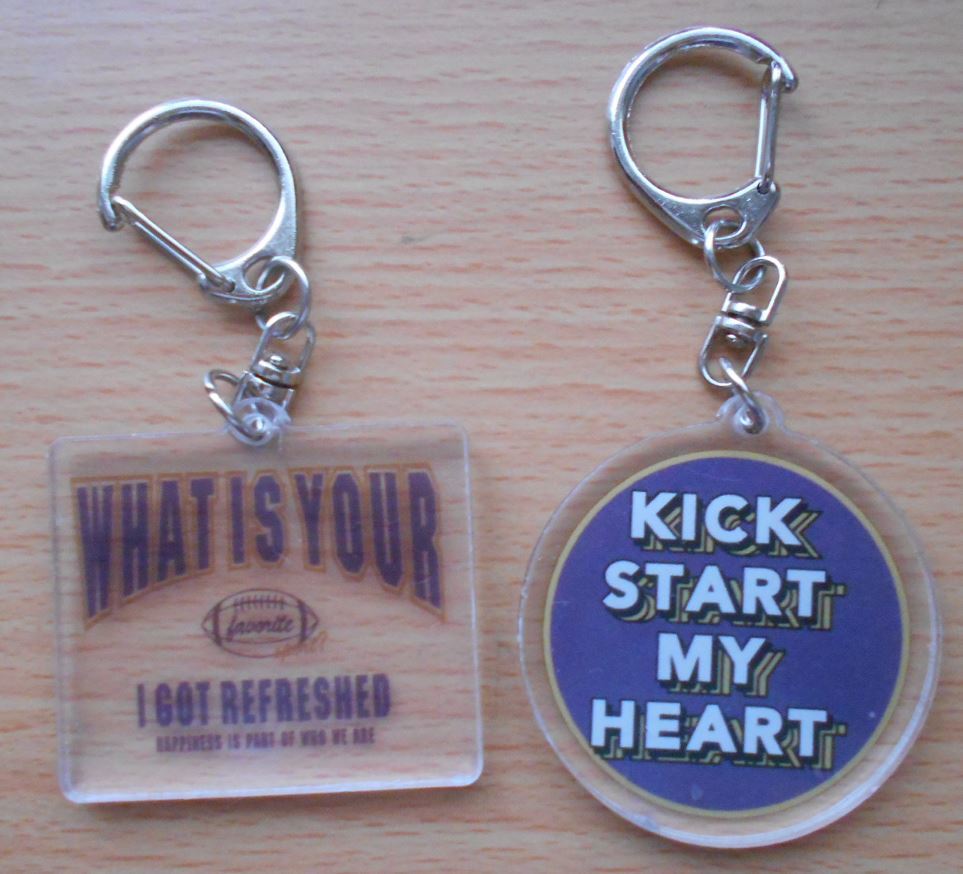 > キーホルダー ラグビーロゴ WHAT IS YOUR favorite I GOT REFRESHED HAPPINESS IS PART OF WHO WE ARE ブルーロゴ KICK START MY HEART 2点