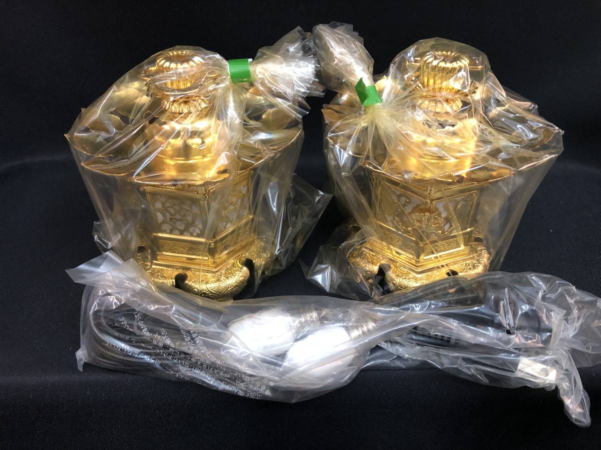 > ◎神前燈籠 二寸 真鍮製純本金付 コード付き 1-3 浜壇・仏壇・仏具 飾り金具 デッドストック品 高さ×巾(笠径)㎜ 108×112