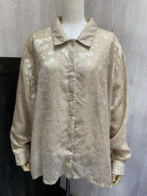 > 90s SALON STUDIO ボタニカル 透かし模様 レース シャツ ブラウス ビンテージ アメリカ古着 シンプル モード系 ユニセックス USED