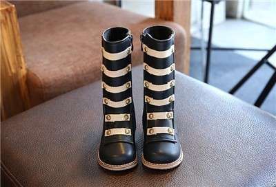 > 子供靴puレザー防水キッズスノーブーツブランド女の子男の子ゴムブーツファッション冬スニーカー_黒_18cm