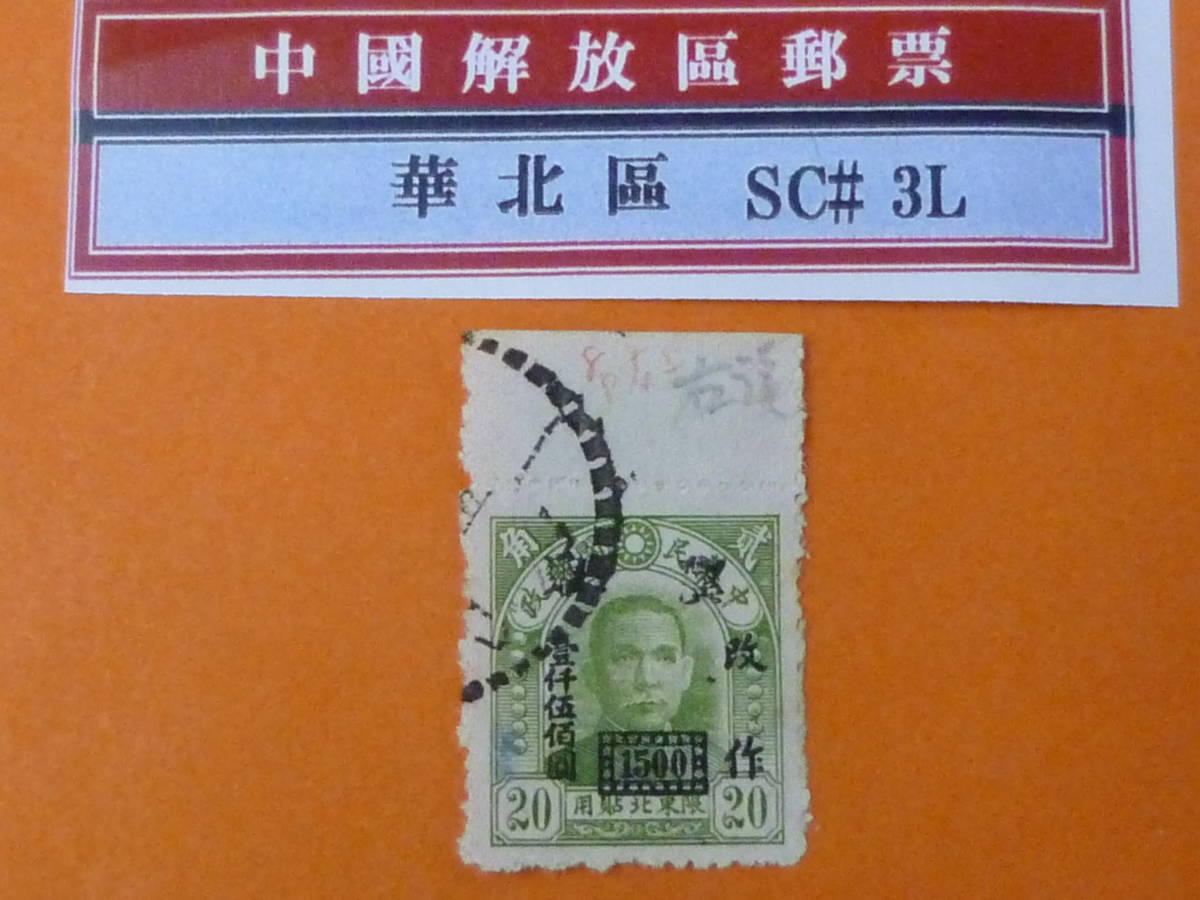 - 22SE A №85 中国解放区切手 華北区 1949年 NC#147 唐山第三次加蓋冀東 $1500/20c 使用済