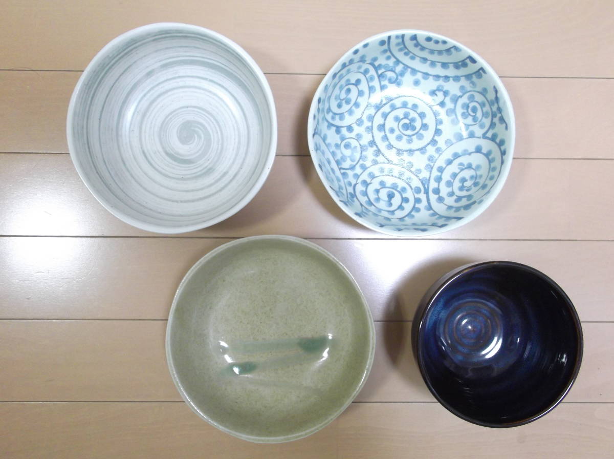 > 【たち吉】☆和 中鉢 3個+ 綺麗 藍 紫 小鉢 ボウル 1個 美品☆即決!! 皿 白 ホワイト 青 ブルー 黄土茶 緑 グリーン PayPay ペイペイ