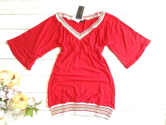 - 新品 drea my minx ライン使い 赤 チュニック ワンピース