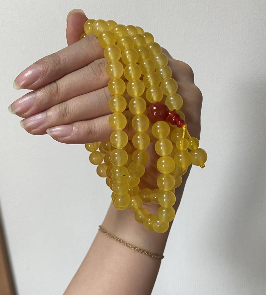 - イエローアゲート 黄瑪瑙ブレスレット 念珠 数珠 108珠 天然石 魔除 お守 幸運 ラッキー 財運金運UP 男女兼用 アクセサリー