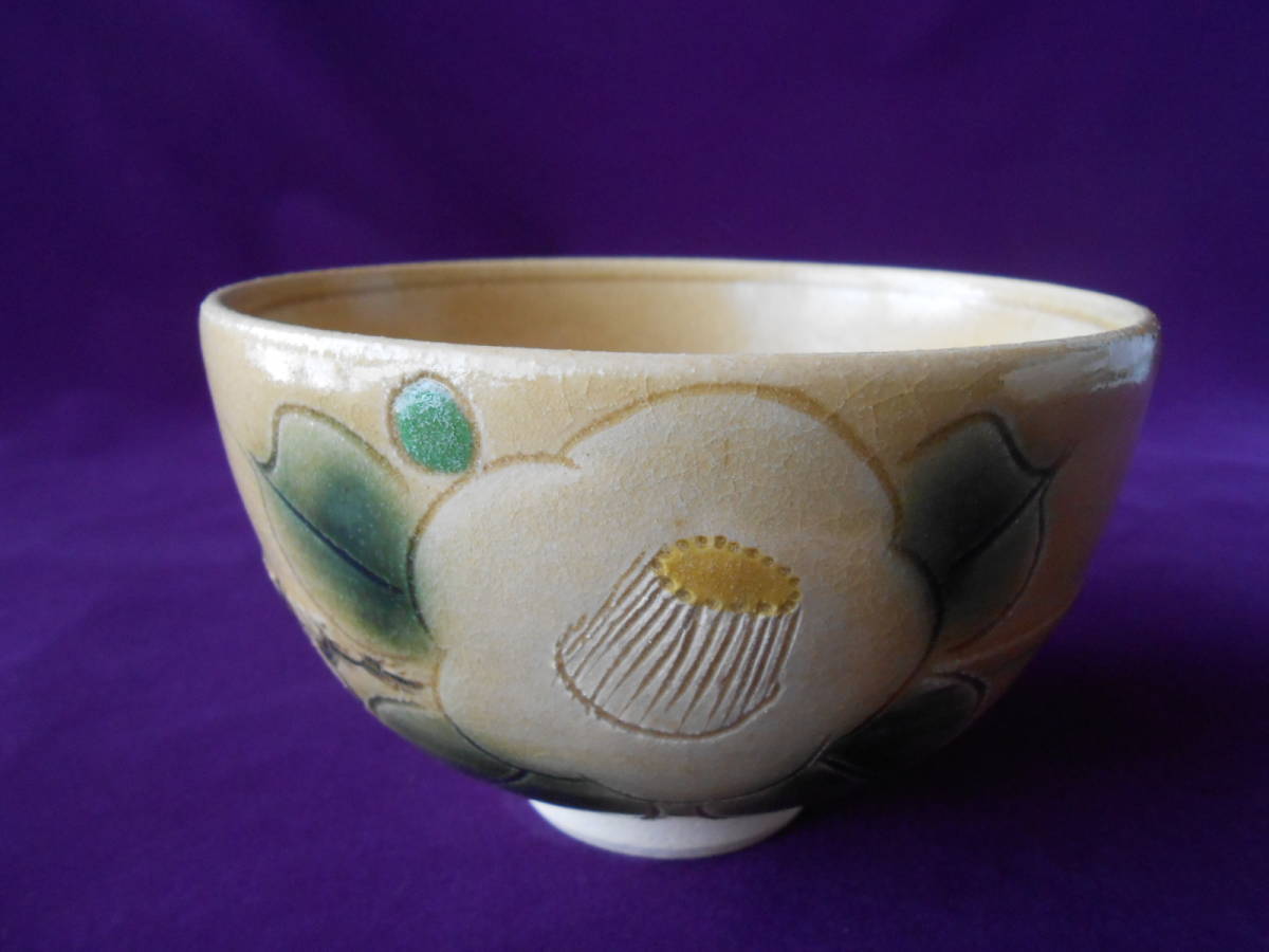 - 茶道具! 中島康之(雅山窯) ☆黄瀬戸椿抹茶碗☆ 新品 汲出 煎茶 ギフト