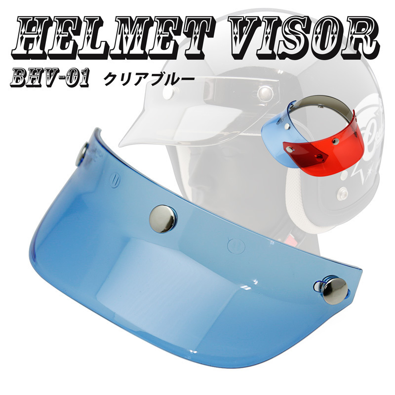 - ヘルメットバイザー キャップバイザー3ボタン汎用品(クリアブルー)送料無料