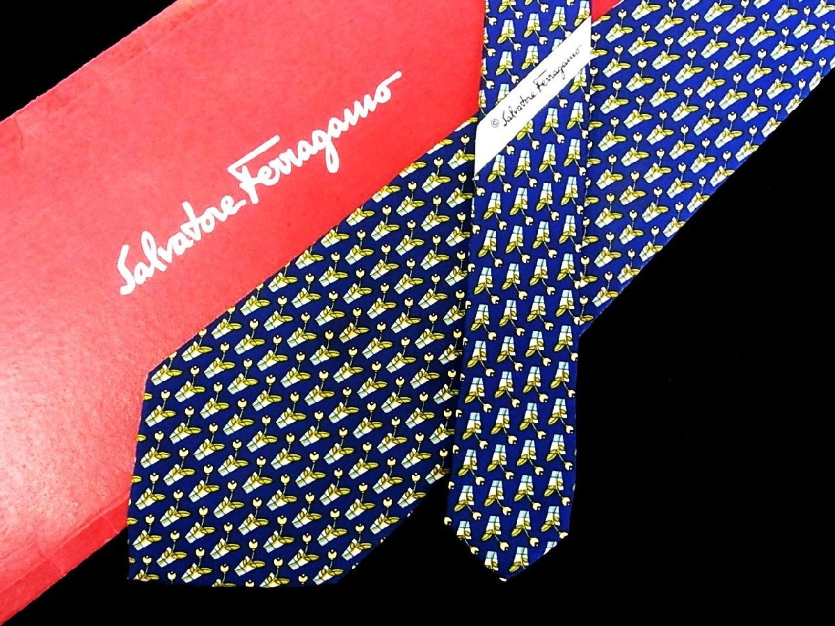 - ♪今週の特売980円~♪0556♪状態並品【Ferragamo】フェラガモ【花 一輪挿し 柄】ネクタイ♪