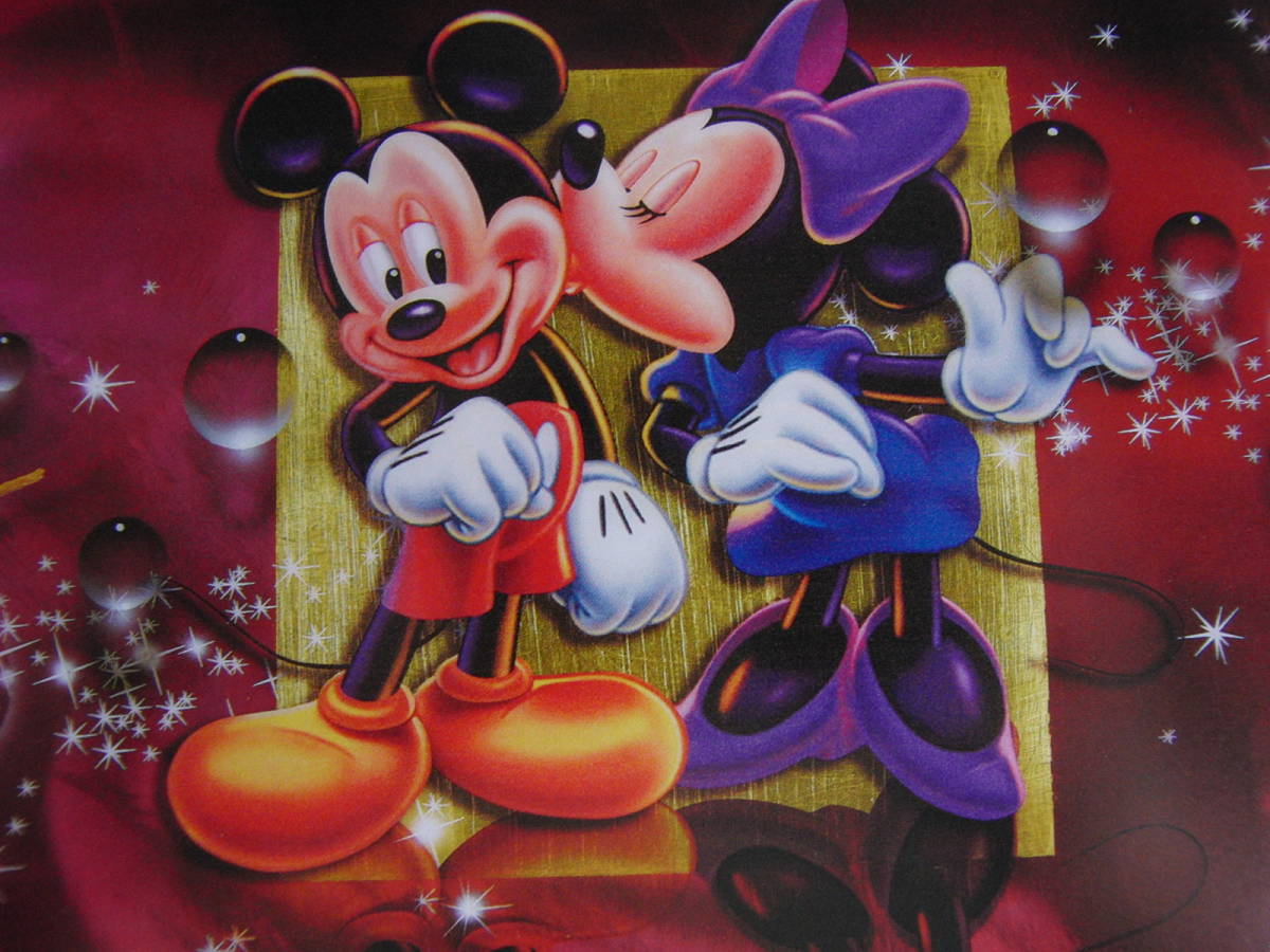- クリスチャン・ラッセン、【ミッキー&ミニー】、希少な額装用画集より、新品額装付、状態良好、送料込み