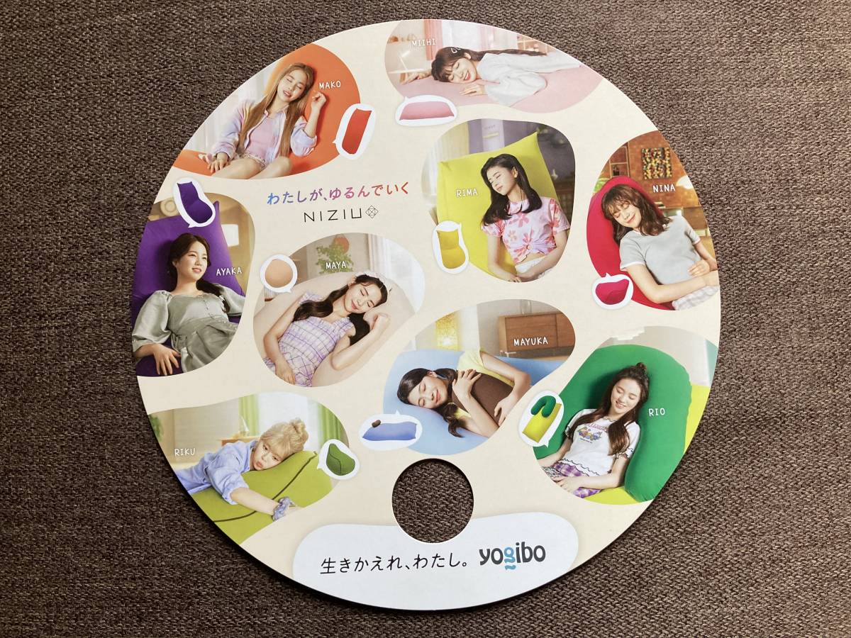 > ★NiziU うちわ 丸型 指穴あり マコ アヤカ マユカ リオ ミイヒ リク ニナ マヤ リマ yogibo ヨギボー 非売品 ノベルティ