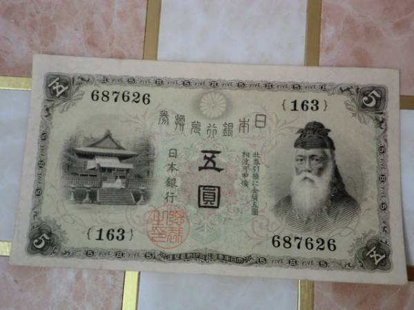 - ★ 大正兌換銀行券5円 大正武内5円 ★ No.302