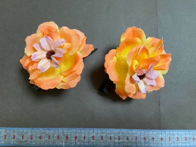 - ◆未使用 ヘアクリップ 髪飾り オレンジ花 和装・リゾートなどに