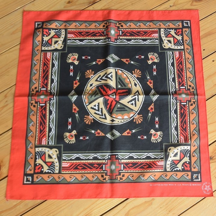 - 送料無料 Vintage ネイティブ柄 バンダナ Made in USA WAMCRAFT サンダーバード アメリカ仕入れ 雑貨 ハンカチ ヴィンテージ A0401