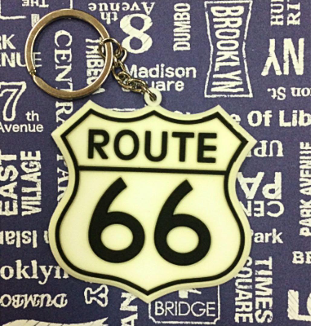 - ラバーキーリング/ ROUTE66 ルート66 キーホルダー アメリカン雑貨 アクセサリー小物 車 バイク マザーロード