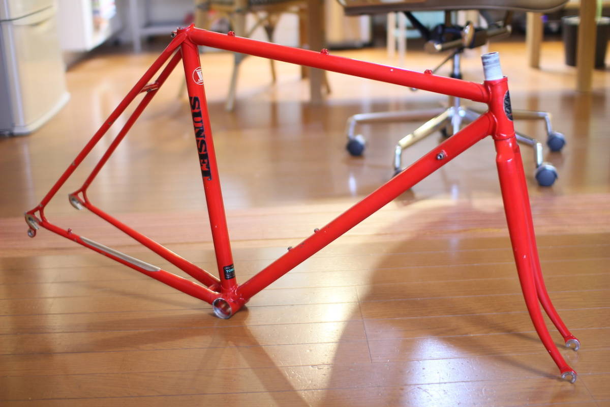 - レア 1970年代 トモダサイクル SUNSET サンセット フレームセット 490mm Camapgnolo エンド 下地メッキ カンパニョーロ レッド