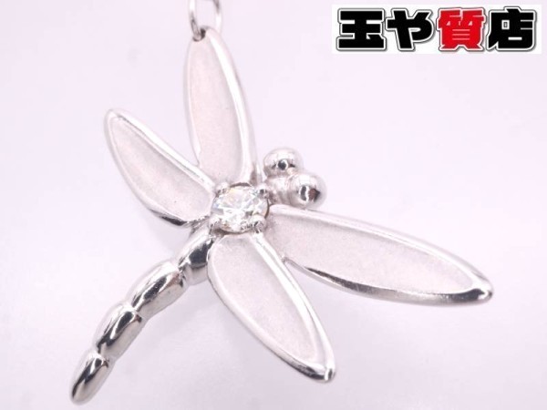 > ティファニー 美品 ダイヤ1P ドラゴンフライ ネックレス 750 K18WG ホワイトゴールド