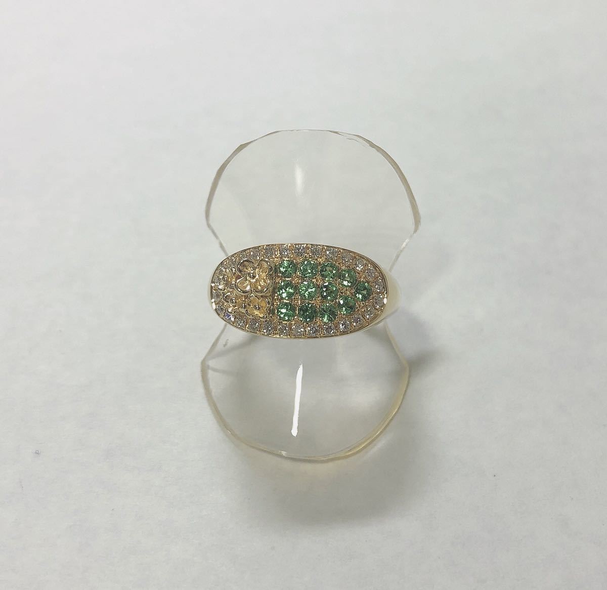 - 【質屋 尾張屋商店 東京】 ☆仕上済☆ K18YG グリーンガーネットダイヤモンドレディースリング #12