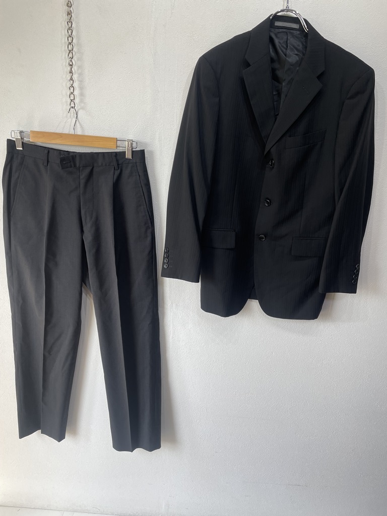 > 【人気】Calvin Klein/カルバンクライン スーツ上下セット サイズ84~90 パンツウエスト70 上質 オンワード樫山 黒/紺 K2031