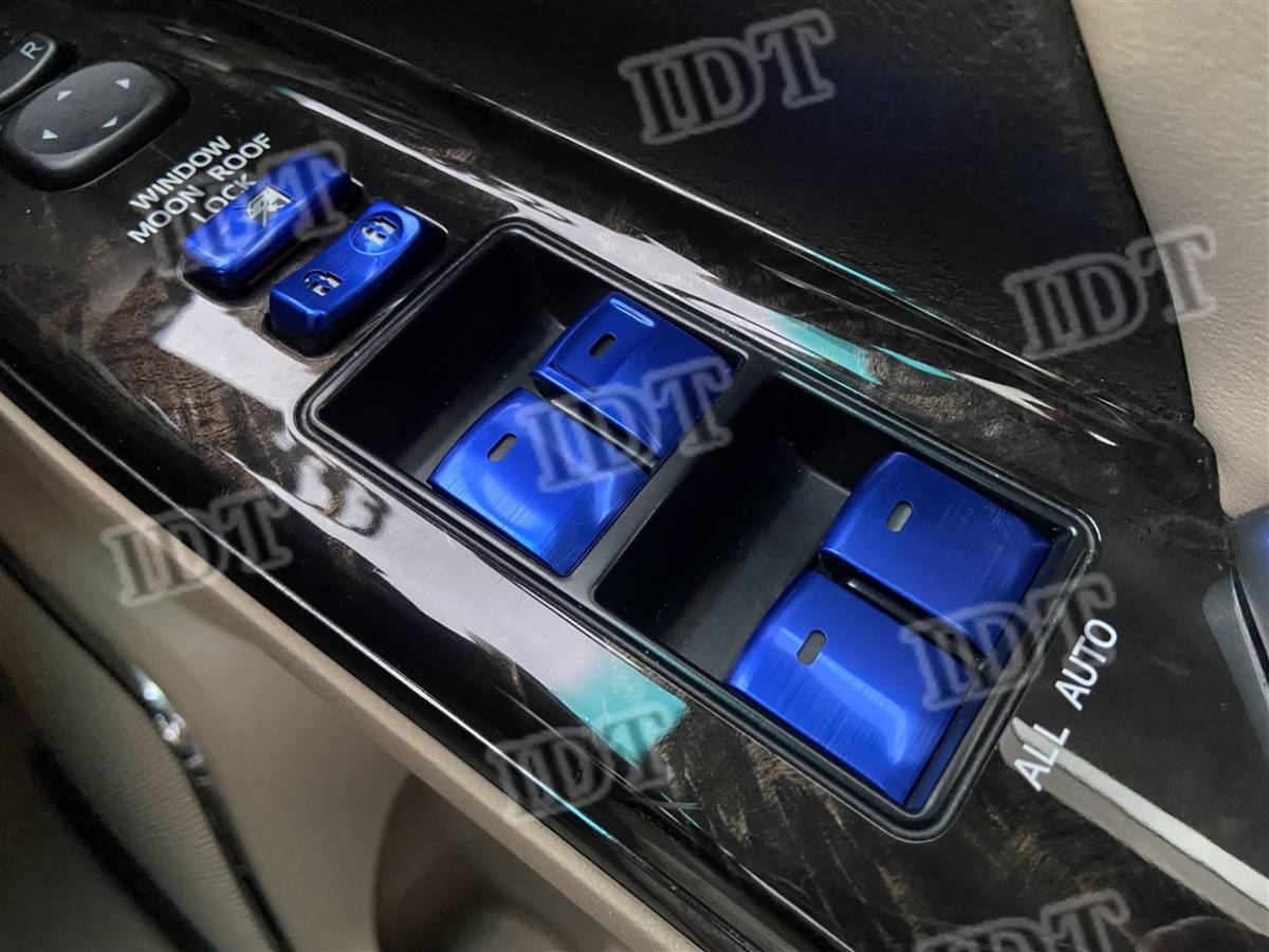 - 20系 アルファード アルミ パワーウインドウ スイッチ カバー ブルー 青 ボタン ガーニッシュ 9個セットカスタム パーツ 前期 後期
