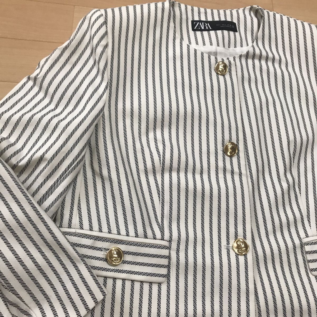 - a23 ZARA ザラ Lサイズ 未使用品 長袖 ブレザー ジャケット 上着 ストライプ ノーカラー