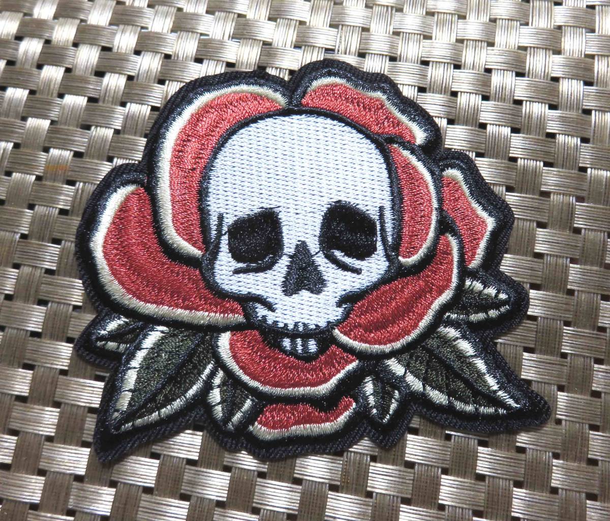 - 頭骸骨薔薇◆新品ドクロ 骸骨 バラ ローズ タトゥー 入れ墨 刺繍ワッペン◆アメリカ ヨーロッパ■激シブ アート 芸術 美術■怪奇