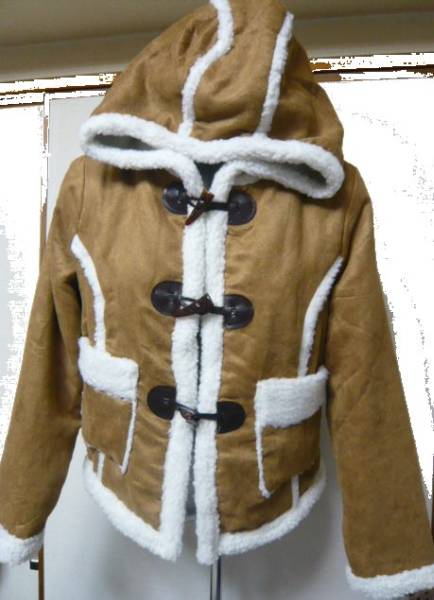 > 匿名配送 送料無料 新品 スエード調 モコモコ ダッフル ジャケットコート キャメル ボア 茶色 レディース M 即決 アウター もこもこ