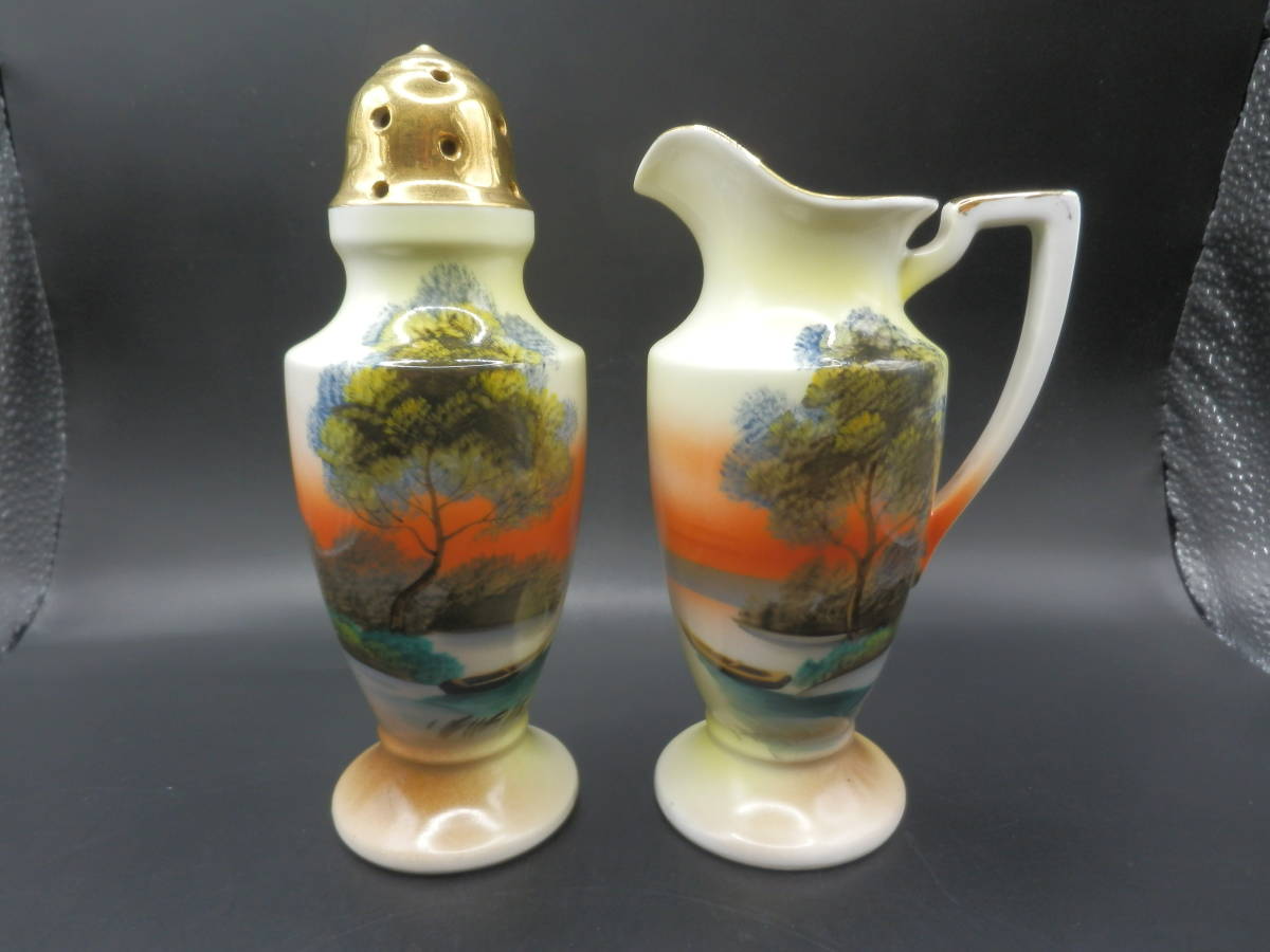 - 湖畔の風景画 調味料入れ 2本 美品 ☆ オールドノリタケ