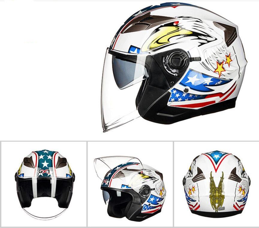 > cjx507★バイクヘルメット ジェット ダブルシールド付き夏用ヘルメット M -XLサイズ 多色M