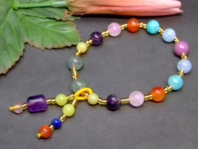 > 天然石 パワーストーン 60045 5mm~9mm フォスフォシデライト アクアマリン等 ミックス石 ブレスレット 内径16cm 送料無料
