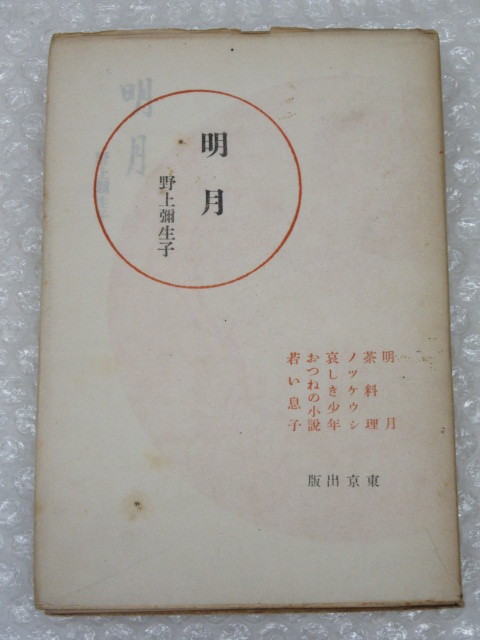 - 野上彌生子/明月/東京出版/昭和22年(初版の記載なし)/絶版 稀少 レア