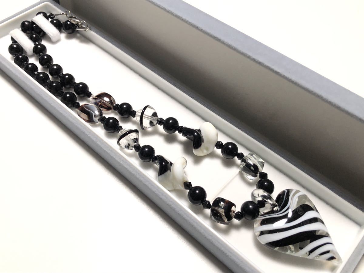 - ガラス細工 樹脂 49.0g ブラック&ホワイトカラー ハート ペンダントネックレス【検/硝子】