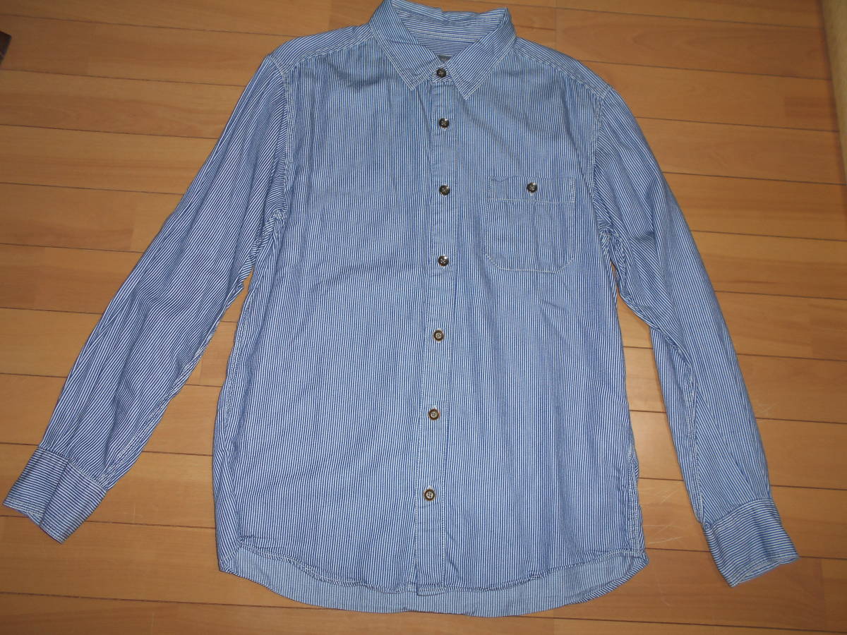 - 【特別価格】★Eddie Bauer no.34-9931 綿65Xテンセル35 ヒッコリーストライプシャツ★紺sizeS★