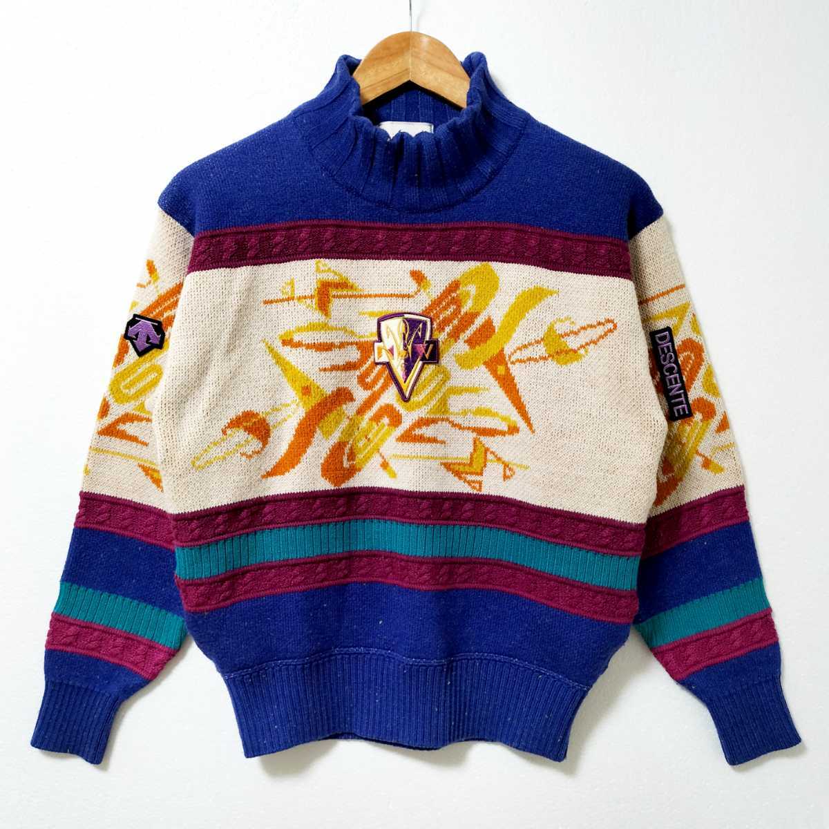 - 【90’s】DESCENTE デサント モックネック 長袖 厚手 ニット セーター Mサイズ