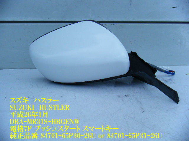 > ◆MR31S スズキ ハスラー 右ドアミラー サイドミラー 白 26U A7M 7ピン 84701-65P31-26U 純正 中古 即決 [11548]