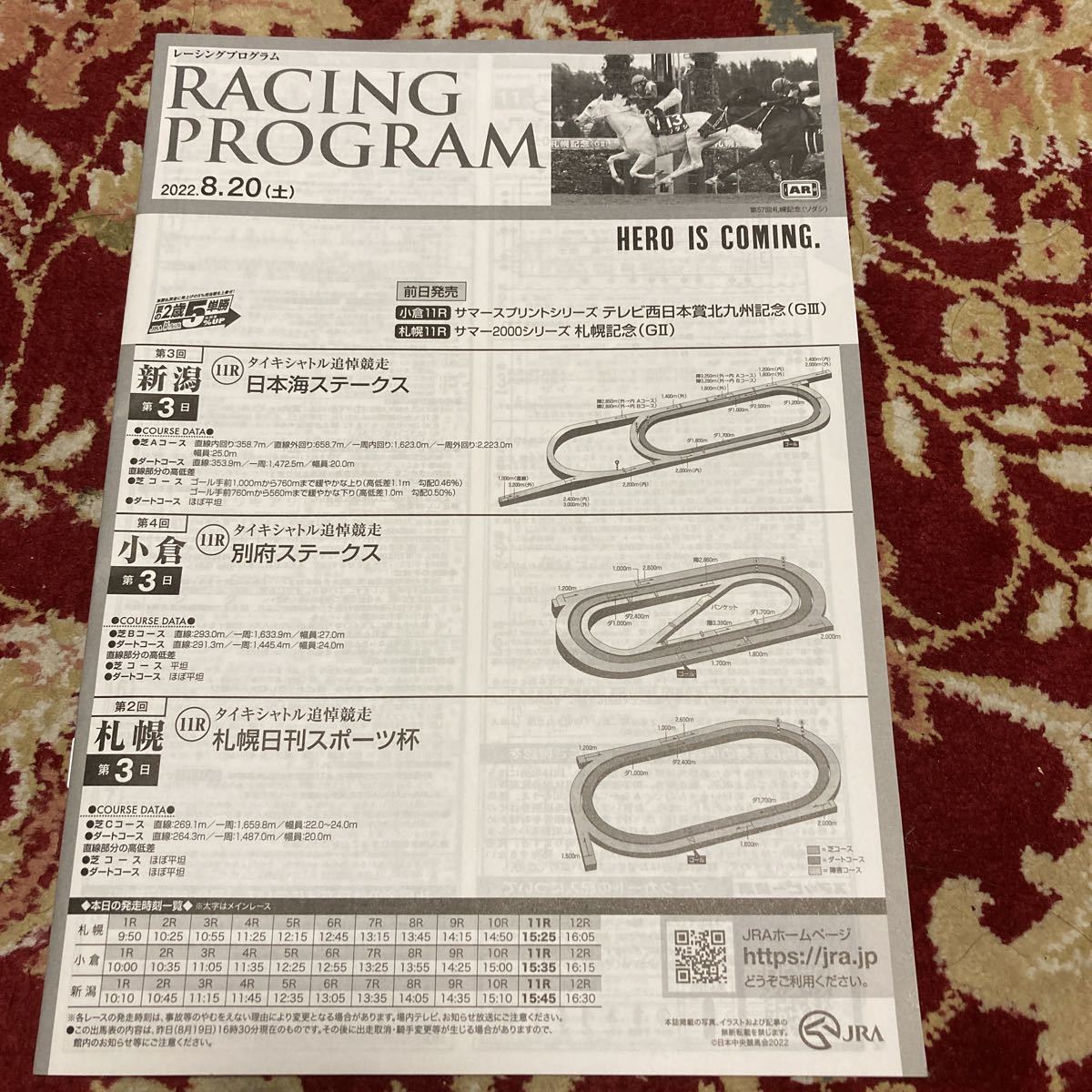 - JRAレーシングプログラム2022.8.20(土)タイキシャトル追悼競走、日本海ステークス、別府ステークス、札幌日刊スポーツ杯