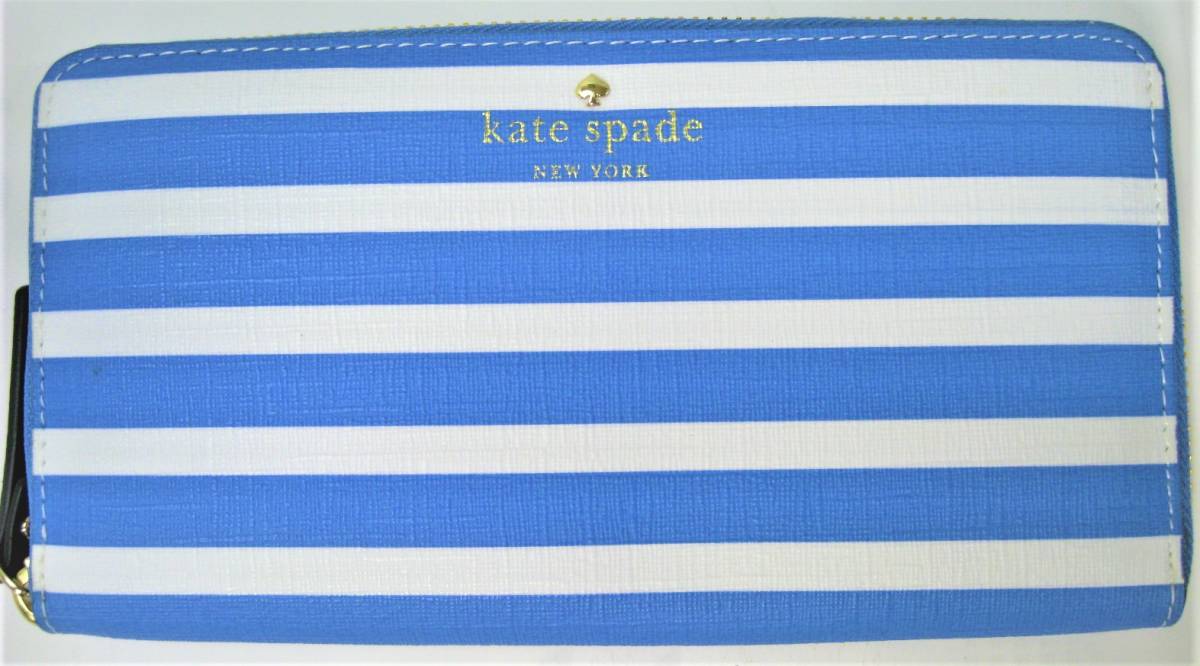 - 【東京 谷中 質屋おぢさん】ほぼ未使用ケイトスペード青白ストライプラウンドファスナー小銭入付PWRU4235
