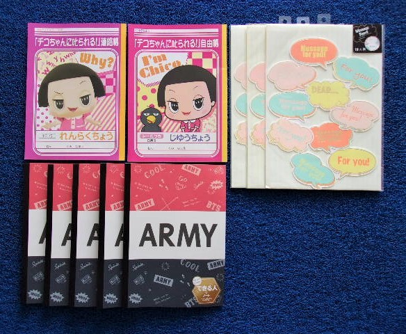 - B-160 ショウワノート/チコちゃん 自由帳 連絡帳 カミオ/できる人のノート ARMY アートプリント/メッセージボード フキダシ 文具 まとめて