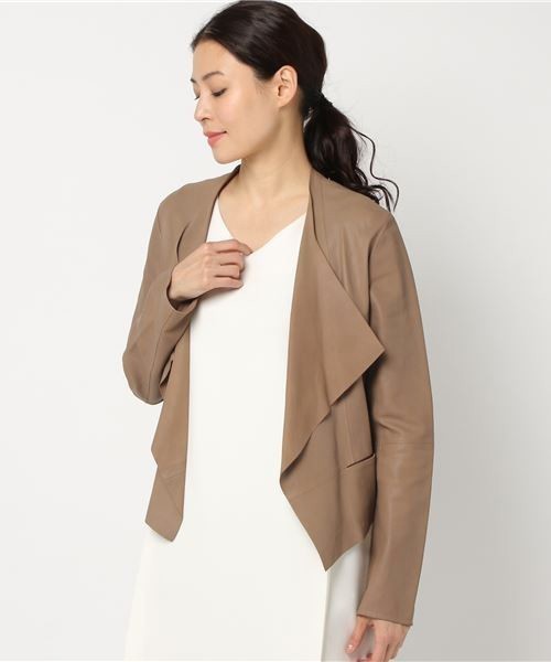 “レザーカーディガン”とは、「ロゥタス」独自の概念で作り上げたひとつのカテゴリーです。一般的なレザーウェアといえば、ライダースジャケットやブルゾンなど重く、かさばるもので秋冬しか着られないようなハードなアイテムが主流でした。そこで「ロゥタス」では、一年中使えてハイゲージのニットカーディガンのように薄くて軽く、さらっと気軽に羽織れるレザーウェアが作れないだろうか? とアイディアを巡らせていました。そこで考え付いたのが、レザーの一枚仕立てで作られた“スクエアヘムカーディガン”。2010年のパリ展で発表されてから、毎シーズンアップデートを加え、現在まで展開しているブランドアイコンともいうべきアイテムです。“スクエアヘムカーディガン”は名前の通り、四角く鋭角にカッティングされた裾(ヘム)が特徴のカーディガンタイプのデザイン。余計なものを削ぎ落とし細部まで計算されたパターンは、シンプルなのにこれ一枚で決まるデザインとして長く愛され続けています。