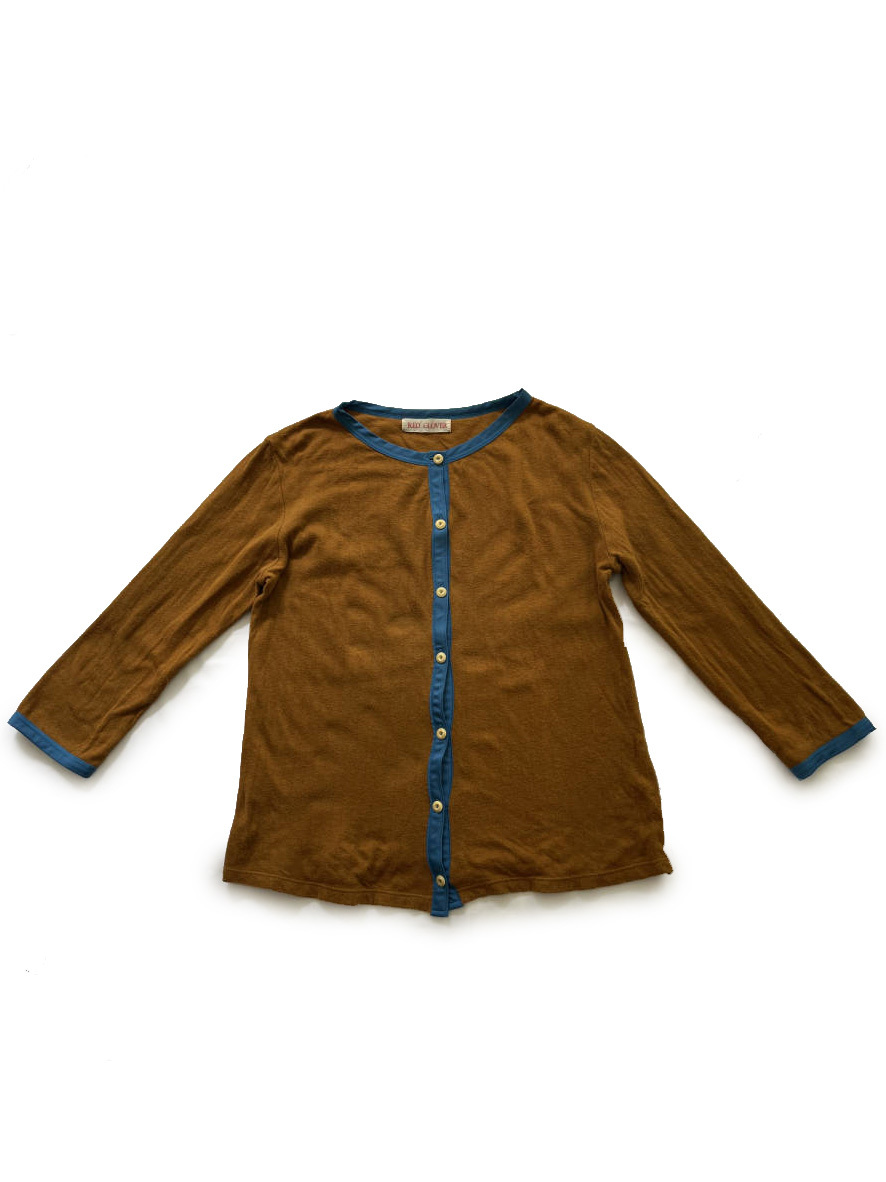 フルボタンタイプで、閉めてトップスのようにしても良し。カーディガンとしても使えますね。