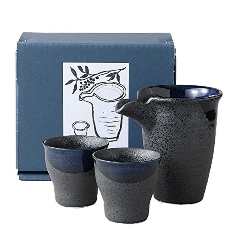 - 美濃焼! ☆黒吹青流酒器セット☆ V3054-5 新品 ぐい呑 サカズキ 盃 杯 徳利 酒注ぎ ギフト