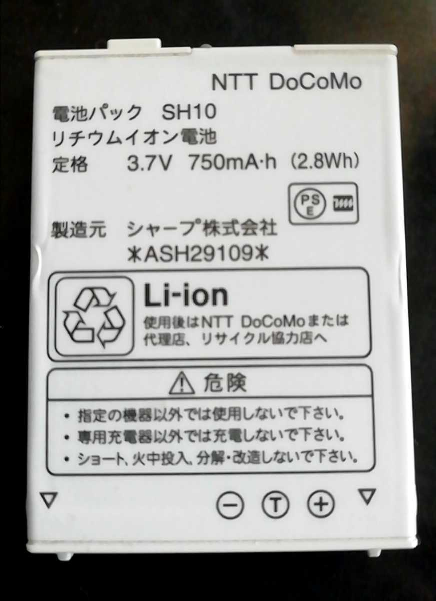 - 【中古】NTTドコモSH10純正電池パックバッテリー【充電確認済】対応機種(参考)SH703i