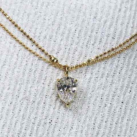 - 【値下げ交渉は質問欄より】ペアーシェイプのダイヤ1,009CT☆K18製の2連ネックレス☆キラリ光るペンダント!!