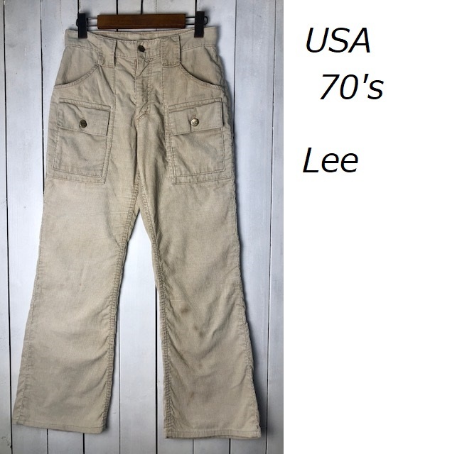 - USA古着 70s USA製 Lee コーデュロイブッシュパンツ ブーツカット 28 フレア ベージュ ヴィンテージ オールド リー 米国製 42タロン ●26