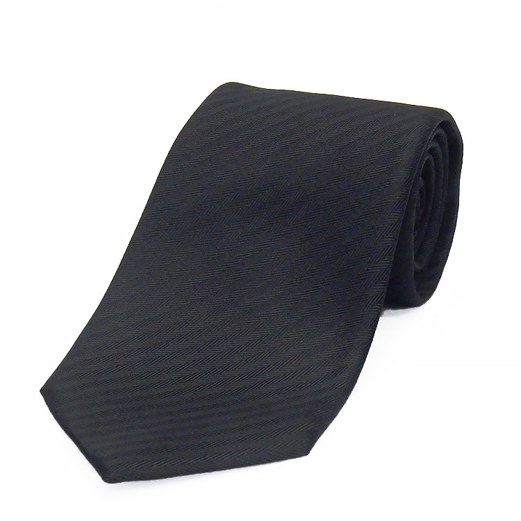- 日本製ネクタイ シルクブレンドタイ 黒 ミニヘリンボーン 甲州織 メール便OK SKW-H01