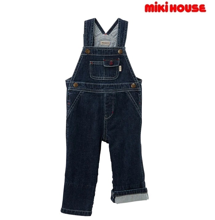 > 即決です!【ミキハウス】新品未使用♪mikihouse フリー 70cm~80cm プチマリン風☆オーバーオール ベビー キッズ 子供服 インディゴブルー