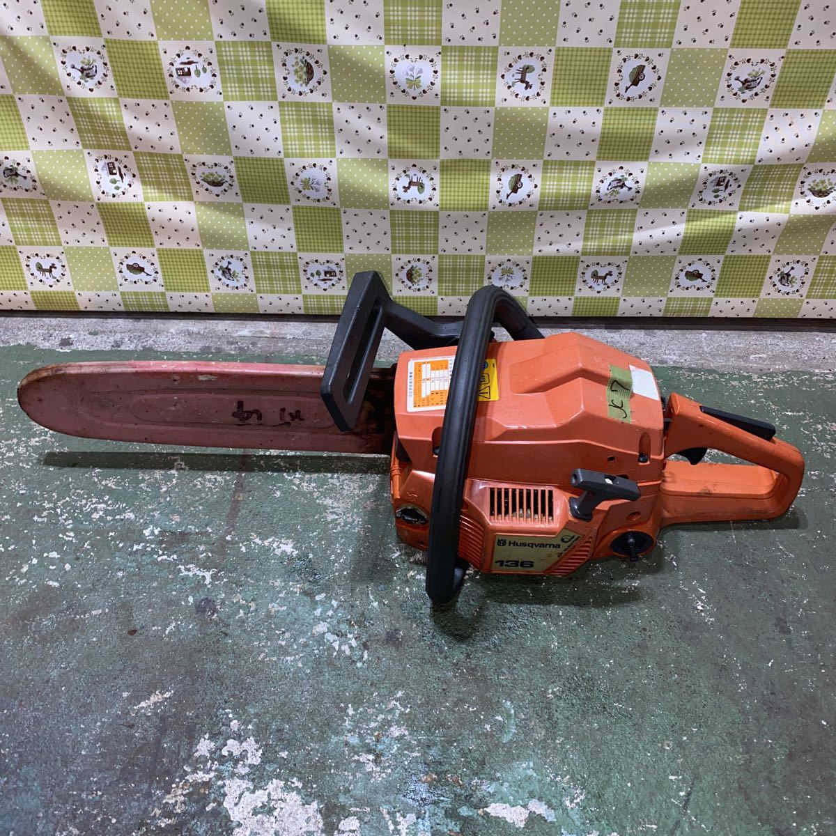 > 【石川】エンジンチェーンソー ハスクバーナ チェンソー ハスクバーナー 136【圧縮、プラグの電気のみの確認】【引き取り可能】【JC7】